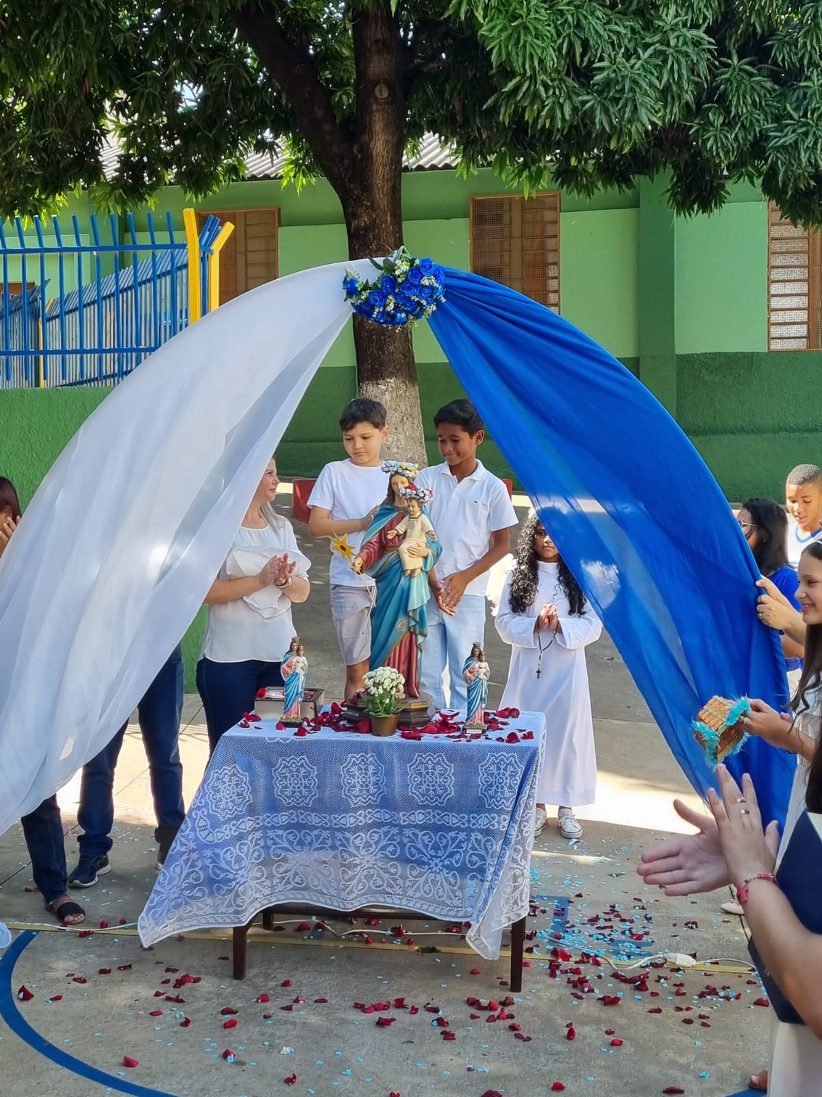 Dia muito especial para todos do Colégio CEMA. Maio um mês de muita luz e ficou ainda mais Lindo com as corações. Quero agradecer a todas as professoras, funcionários e as Irmãs. Obrigada a irmã Zilda pelas reuniões para organizar as corações do mês de maio.