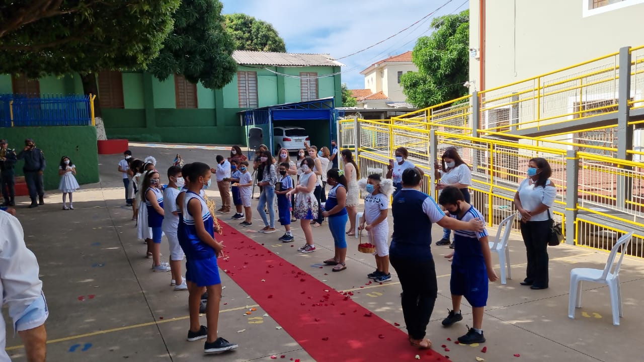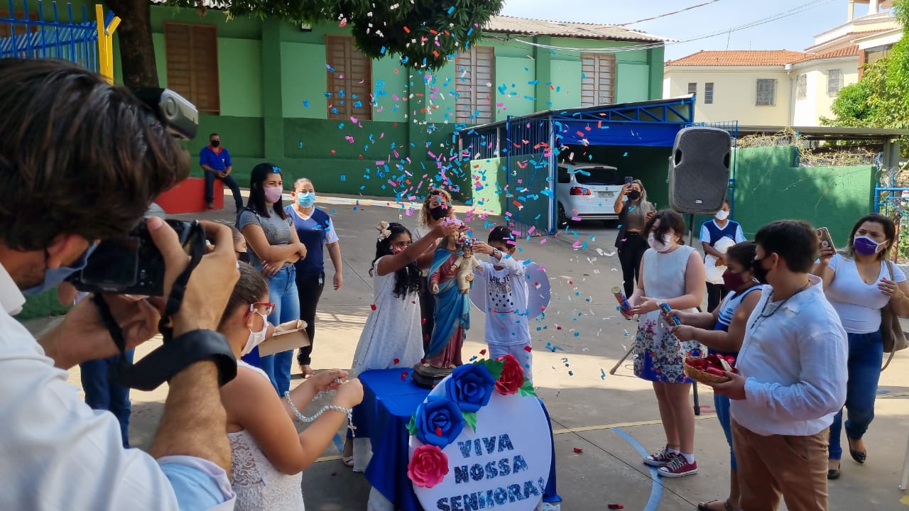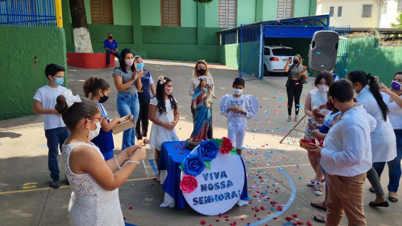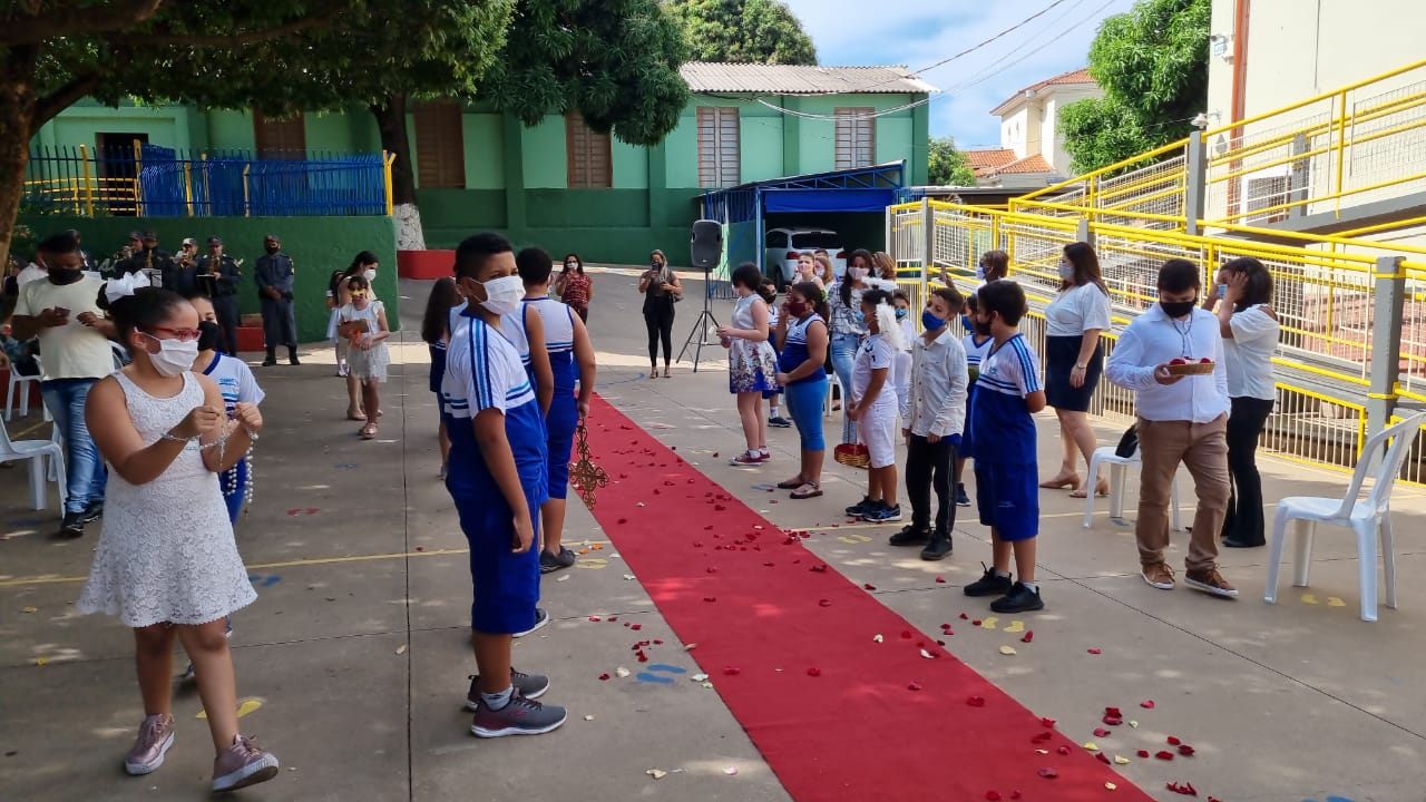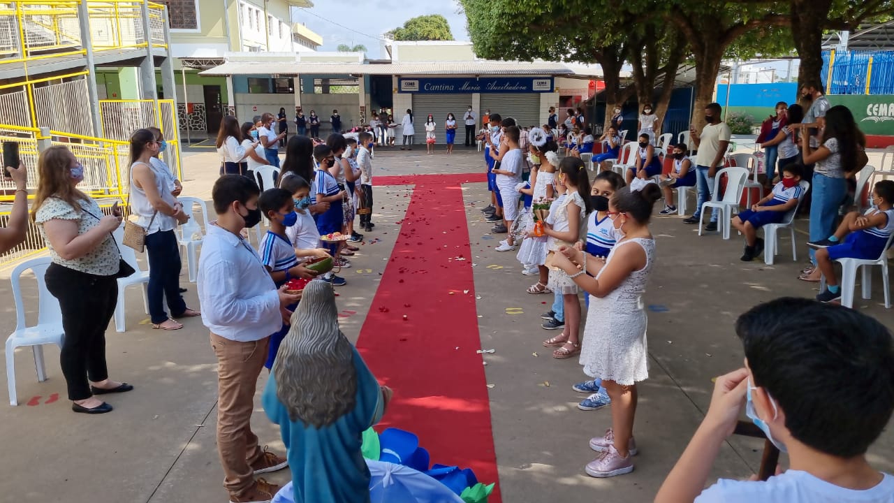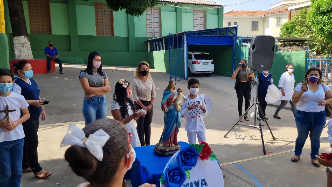 Coroação de Nossa Senhora. Parabéns para as professoras e alunos do 4° e 5° anos. Agradecer também a Banda da Polícia Militar pela linda homenagem!!! Foi lindo!!!