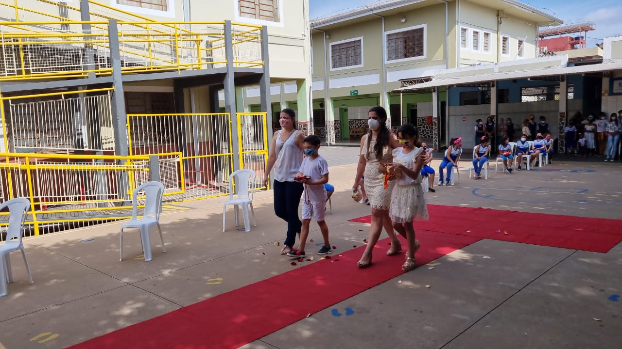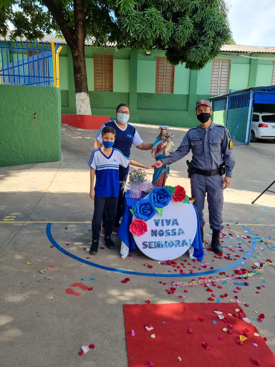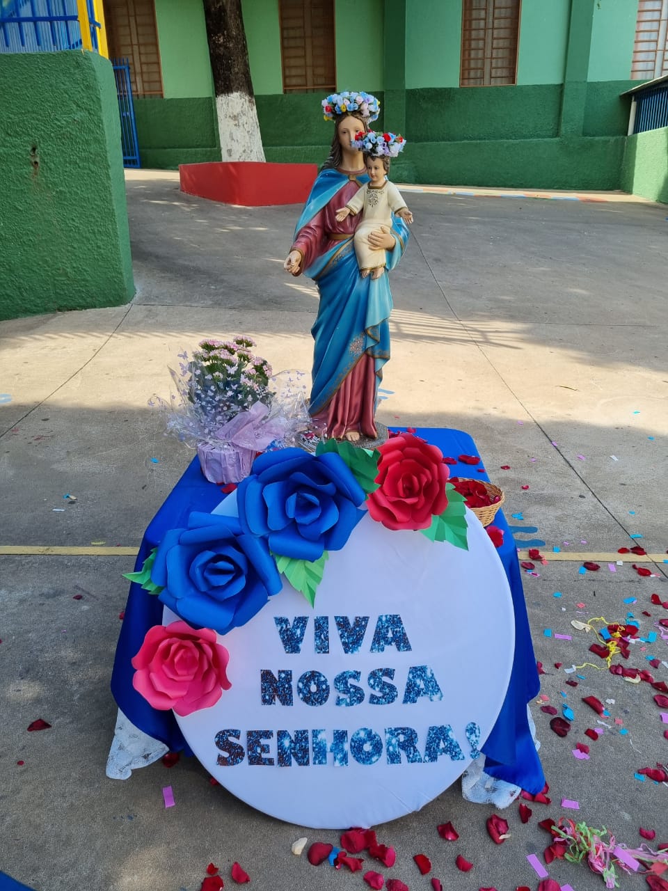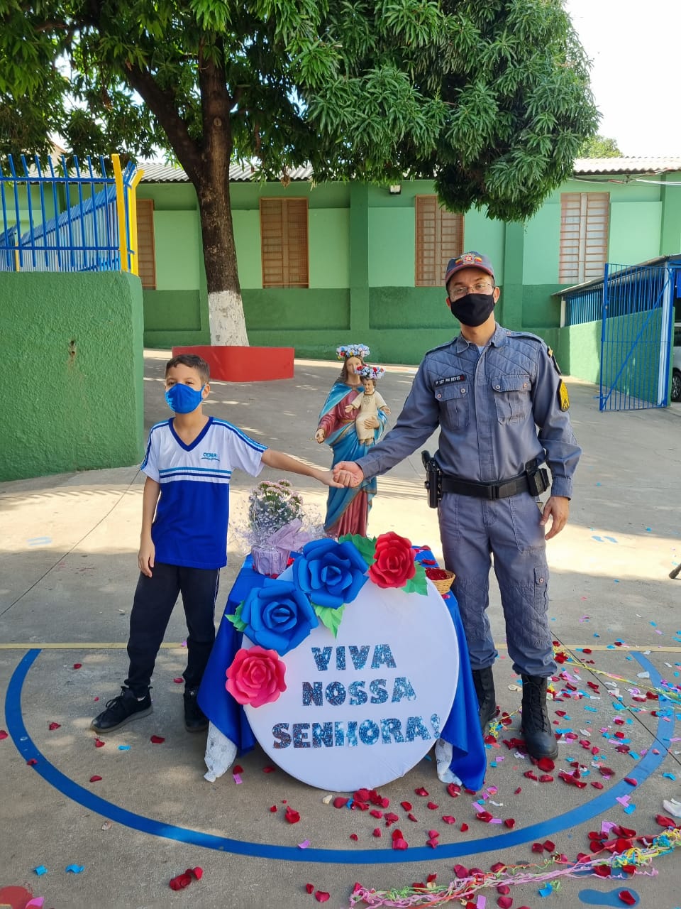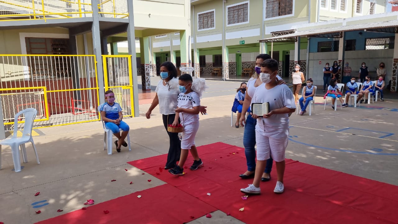 Coroação de Nossa Senhora. Parabéns para as professoras e alunos do 4° e 5° anos. Agradecer também a Banda da Polícia Militar pela linda homenagem!!! Foi lindo!!!
