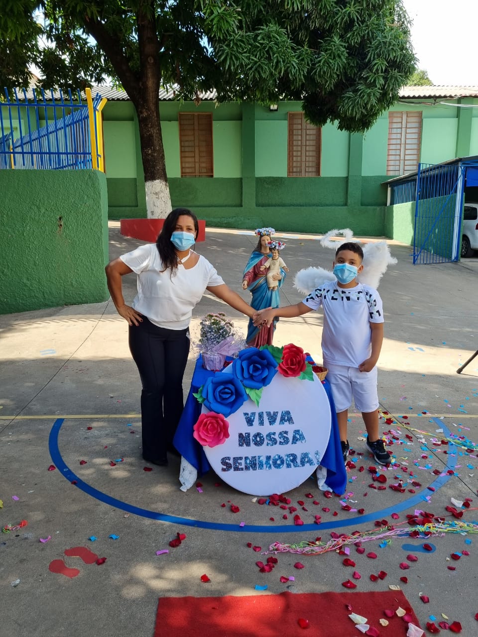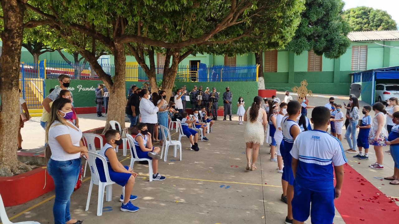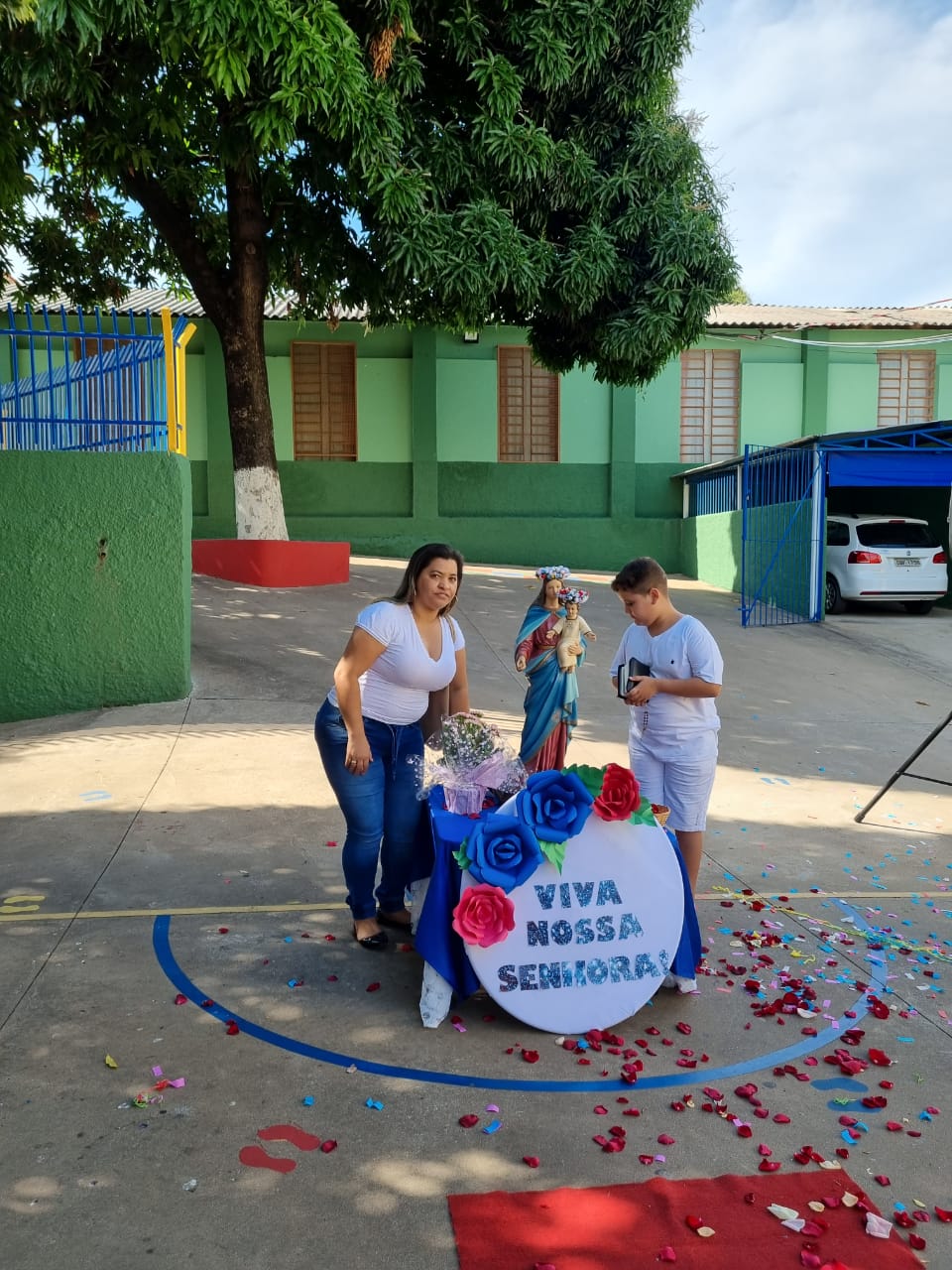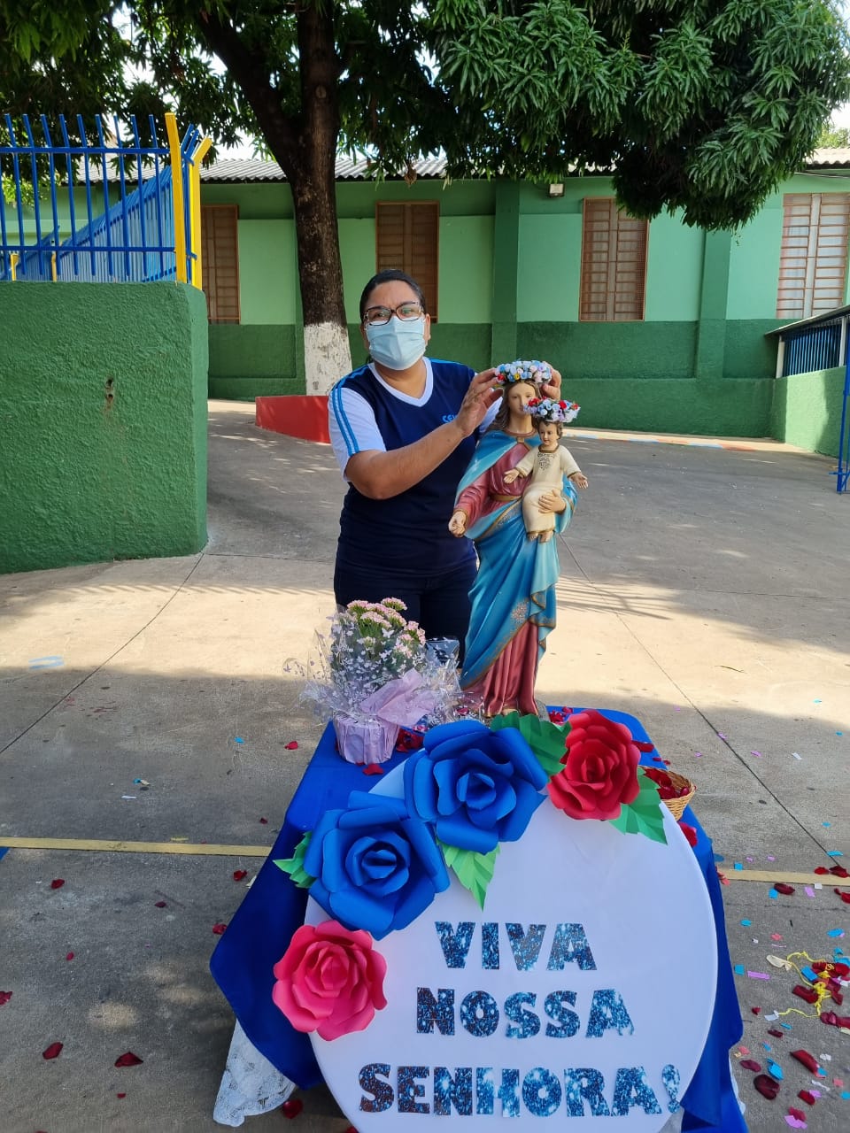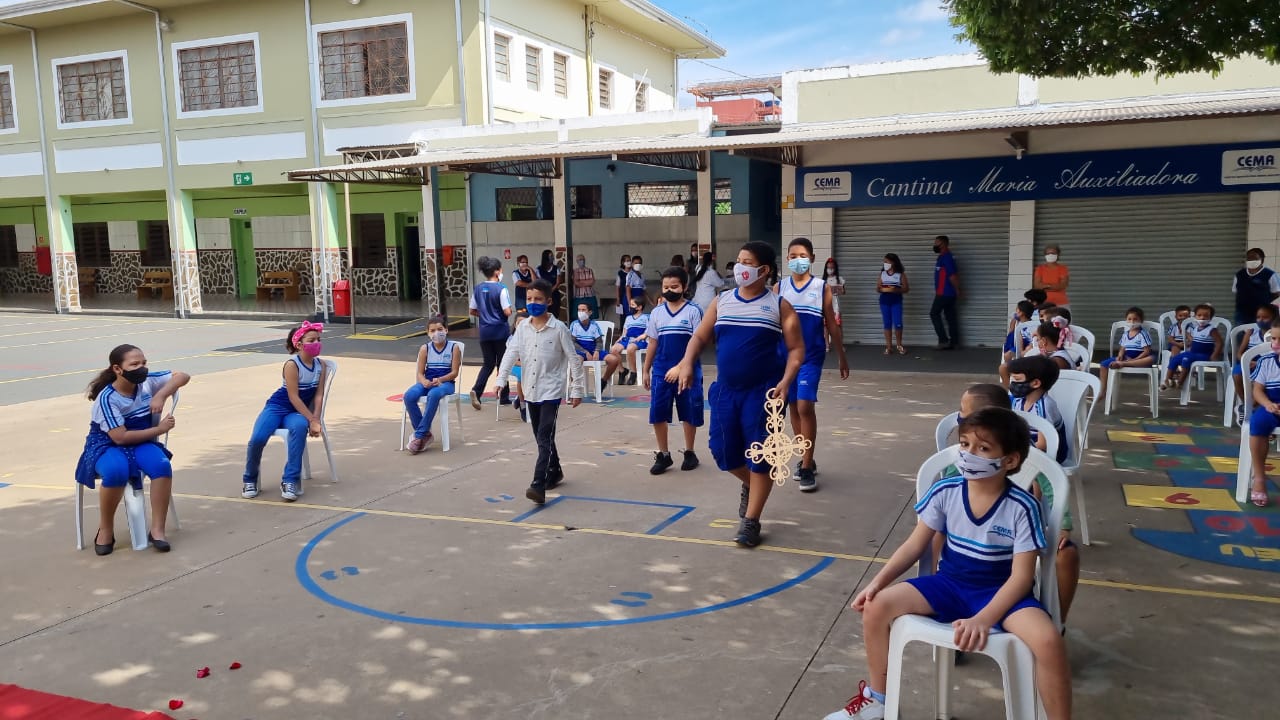 Coroação de Nossa Senhora. Parabéns para as professoras e alunos do 4° e 5° anos. Agradecer também a Banda da Polícia Militar pela linda homenagem!!! Foi lindo!!!