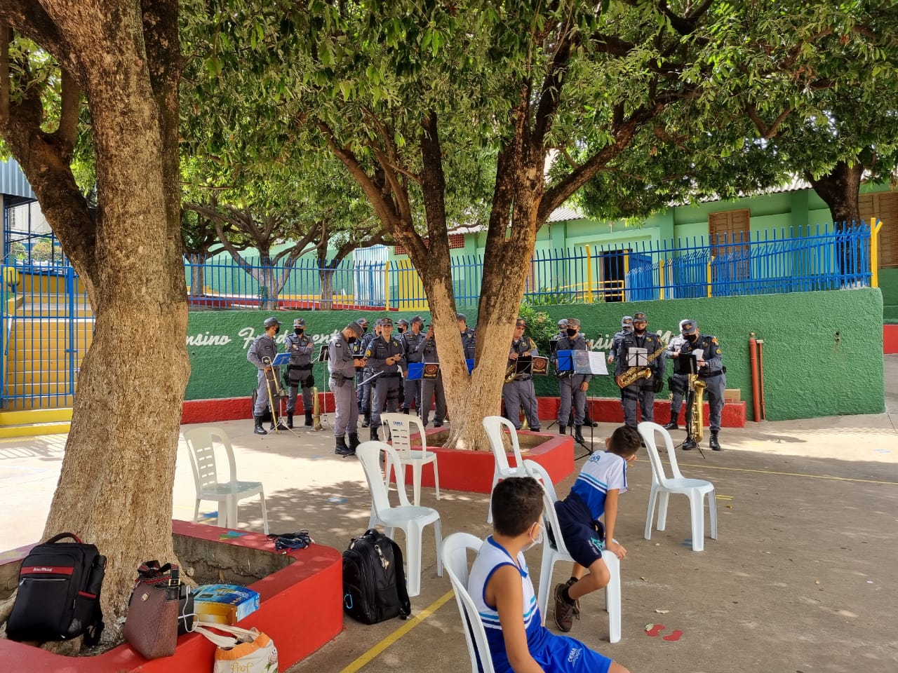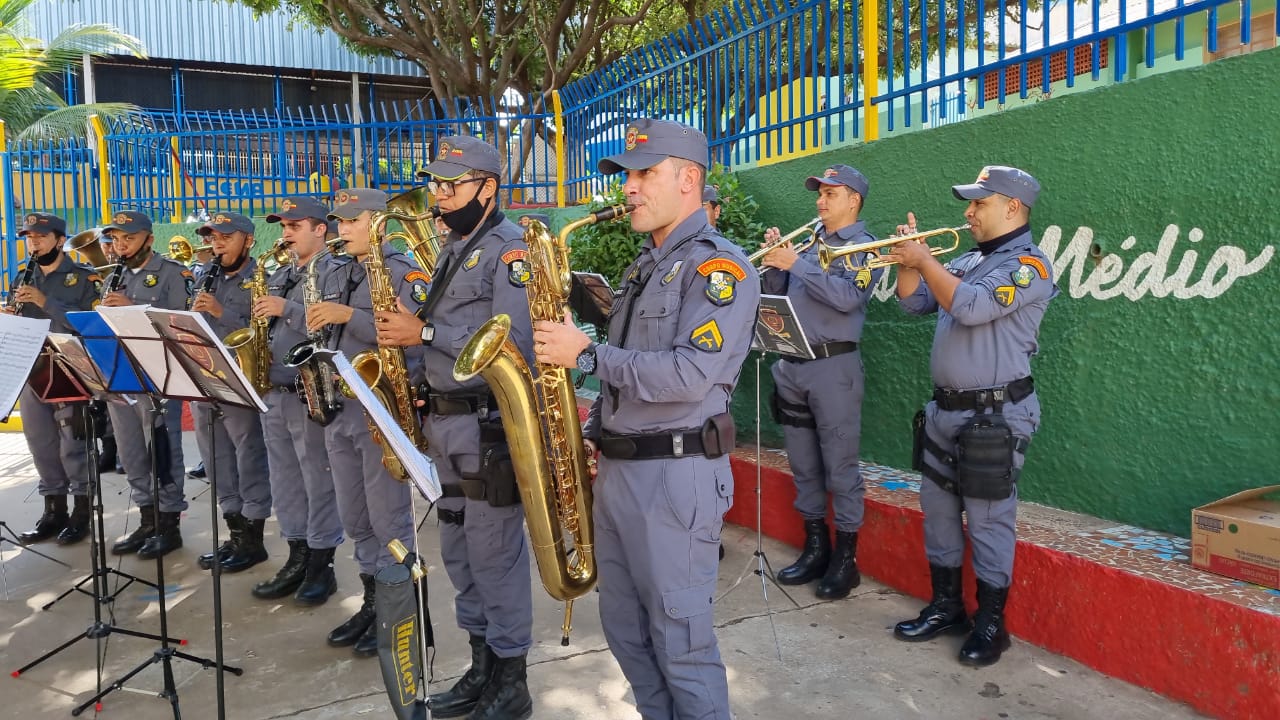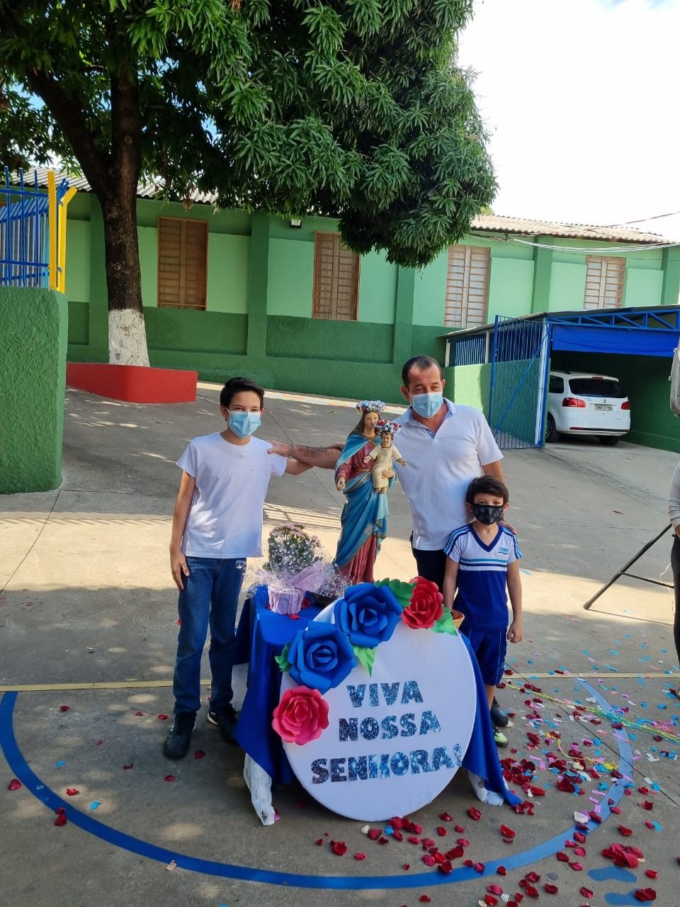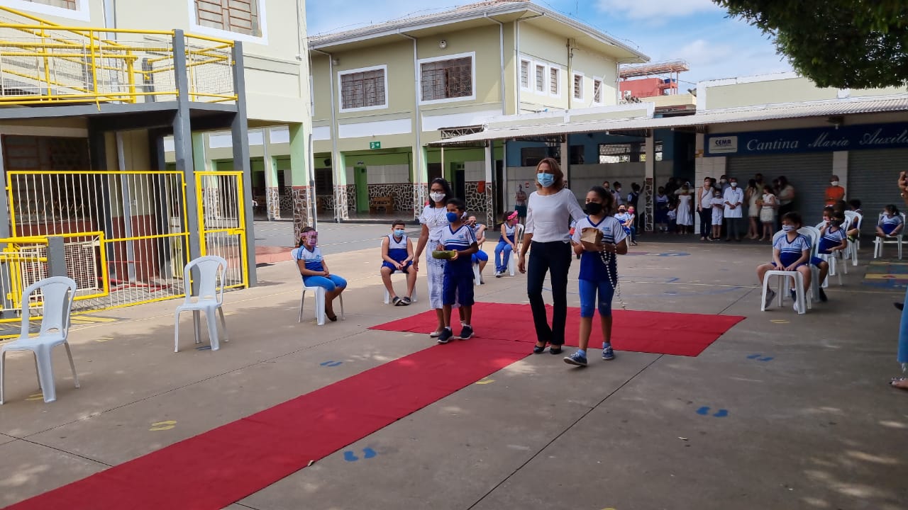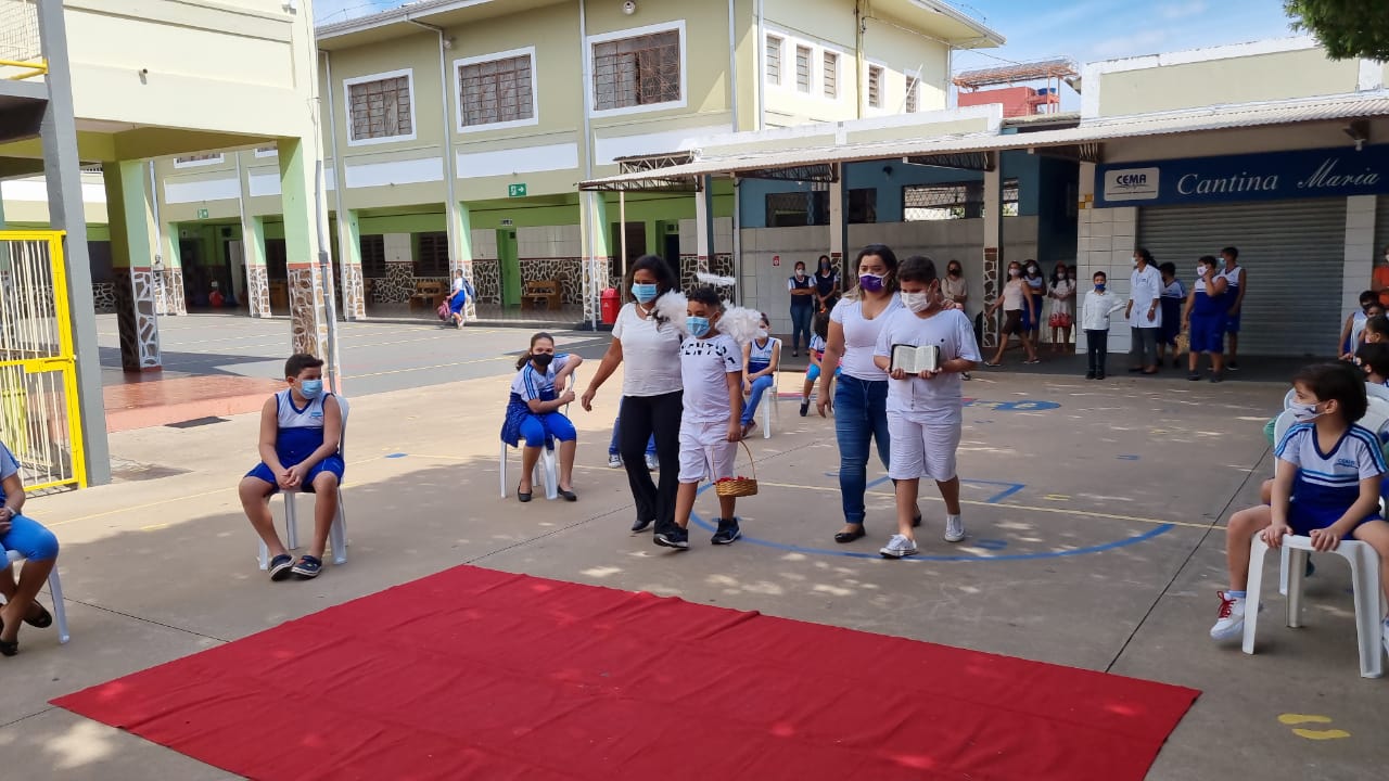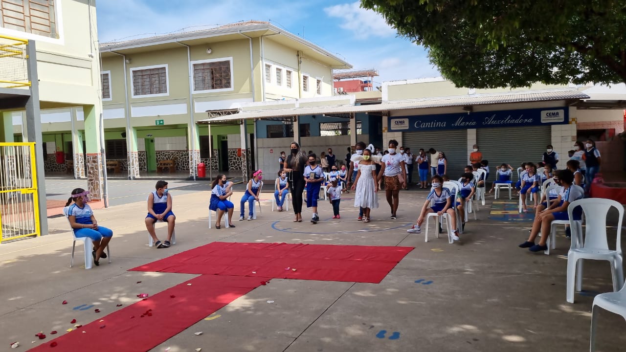 Coroação de Nossa Senhora. Parabéns para as professoras e alunos do 4° e 5° anos. Agradecer também a Banda da Polícia Militar pela linda homenagem!!! Foi lindo!!!