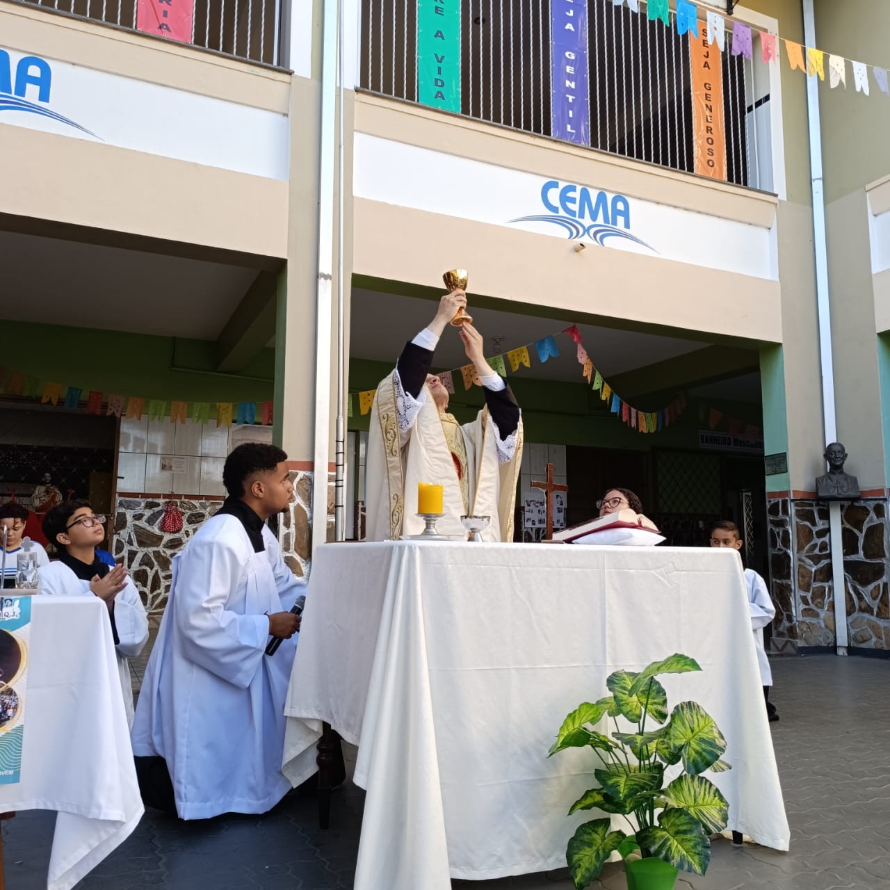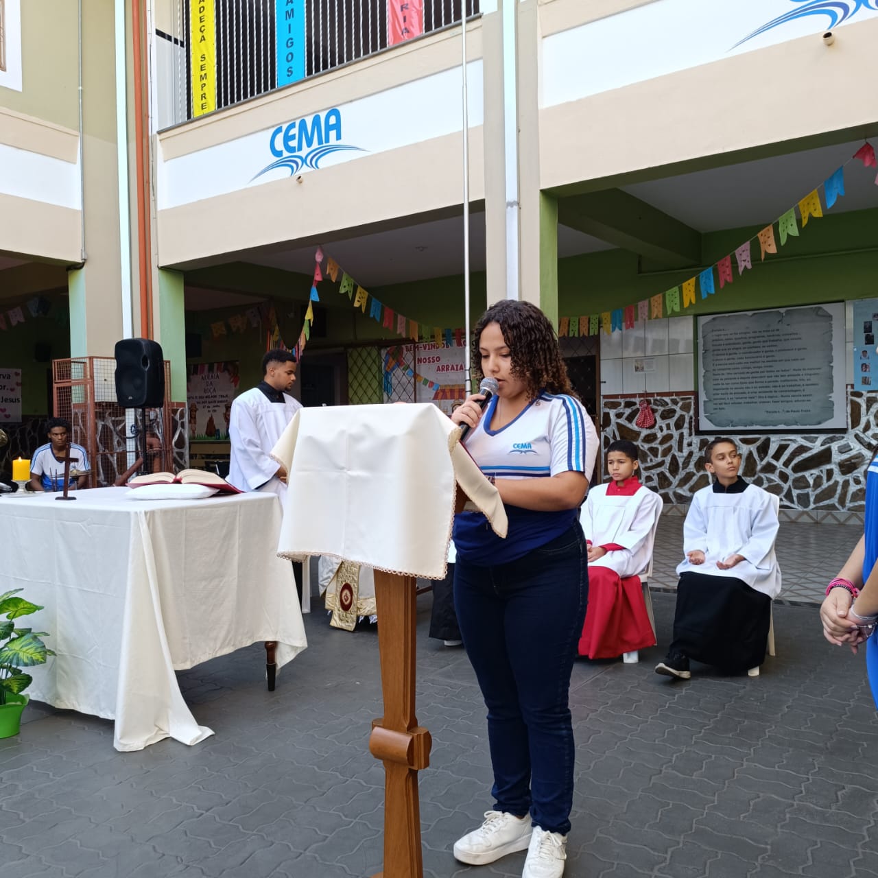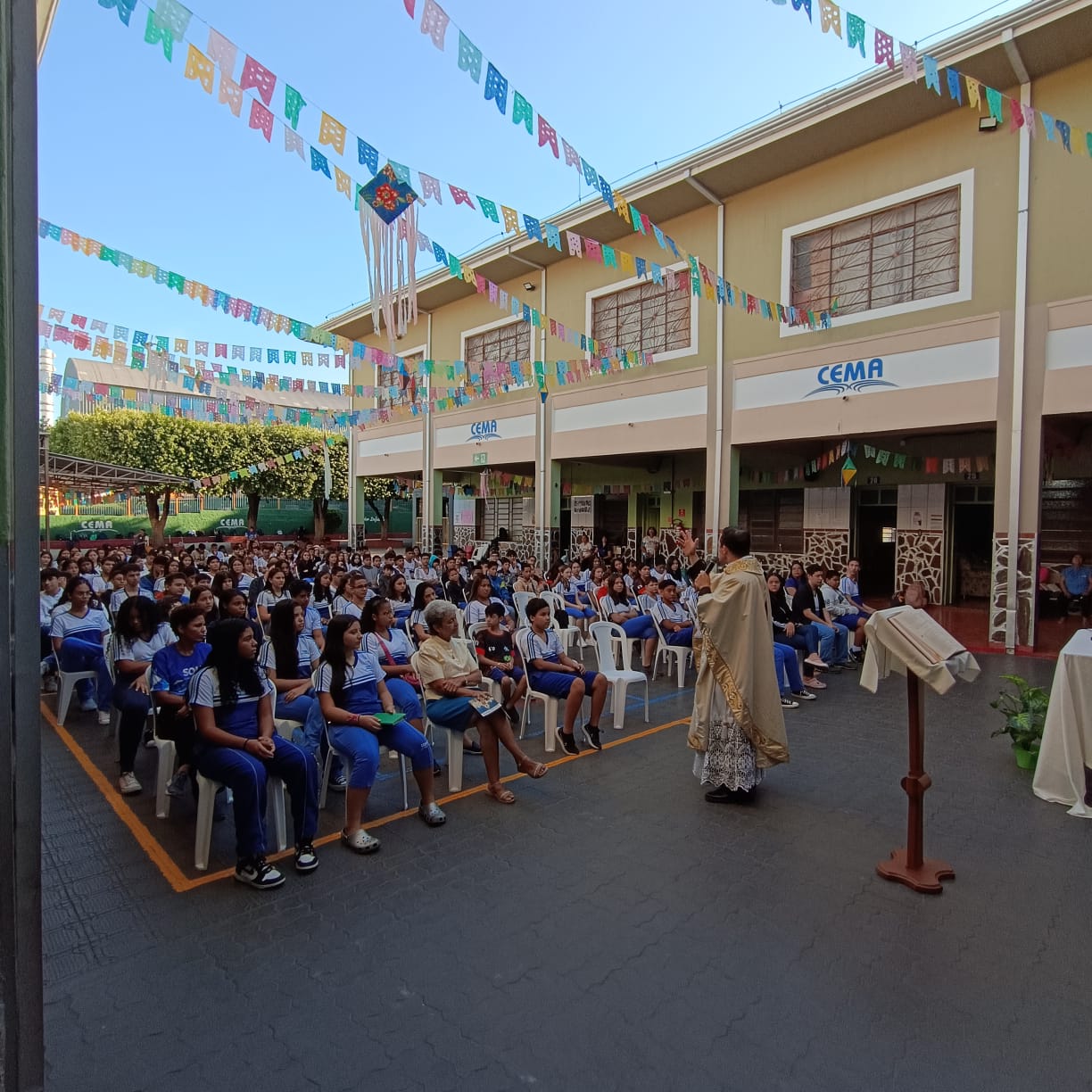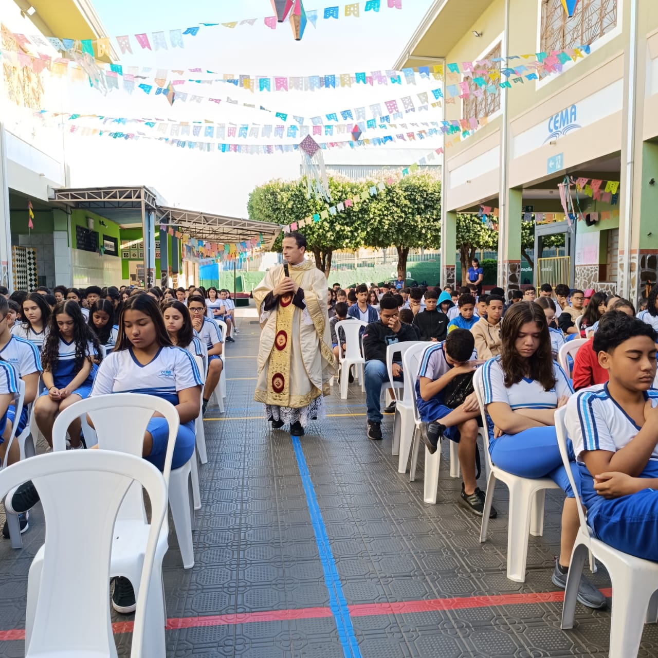 Na manhã de Segunda-feira, todos do Colégio CEMA se reuniram para um momento especial de fé e confraternização durante a Missa. A celebração, realizada nas dependências da escola , foi presidida pelo Pe Tony Moreira Pregrino e contou com a participação de alunos, colaboradores. Em sua homilia, o Pe Tony Moreira Pregrino ressaltou a importância da fé e da educação na formação dos jovens, além de convidar todos os presentes a refletirem sobre o papel da comunidade escolar na construção de um mundo mais justo e solidário. Durante a Missa, os alunos entoaram cânticos religiosos e participaram ativamente da liturgia, demonstrando grande entusiasmo e devoção. Ao final da celebração, todos os presentes receberam a bênção doPe Tony Moreira Pregrino e puderam compartilhar um momento de confraternização no pátio da escola. A Missa em Ação de Graças foi um momento marcante para toda a comunidade escolar do Colégio Cema, que se uniu em fé e esperança para celebrar os laços que os unem e agradecer pelas bênçãos recebidas. Sobre o Colégio CEMA: O Colégio Cema é uma instituição de ensino que se dedica à formação integral de seus alunos, promovendo o desenvolvimento intelectual, social, moral e espiritual. A escola oferece um ambiente acolhedor e estimulante, onde os alunos são incentivados a aprender, crescer e se tornarem cidadãos conscientes e engajados na sociedade.