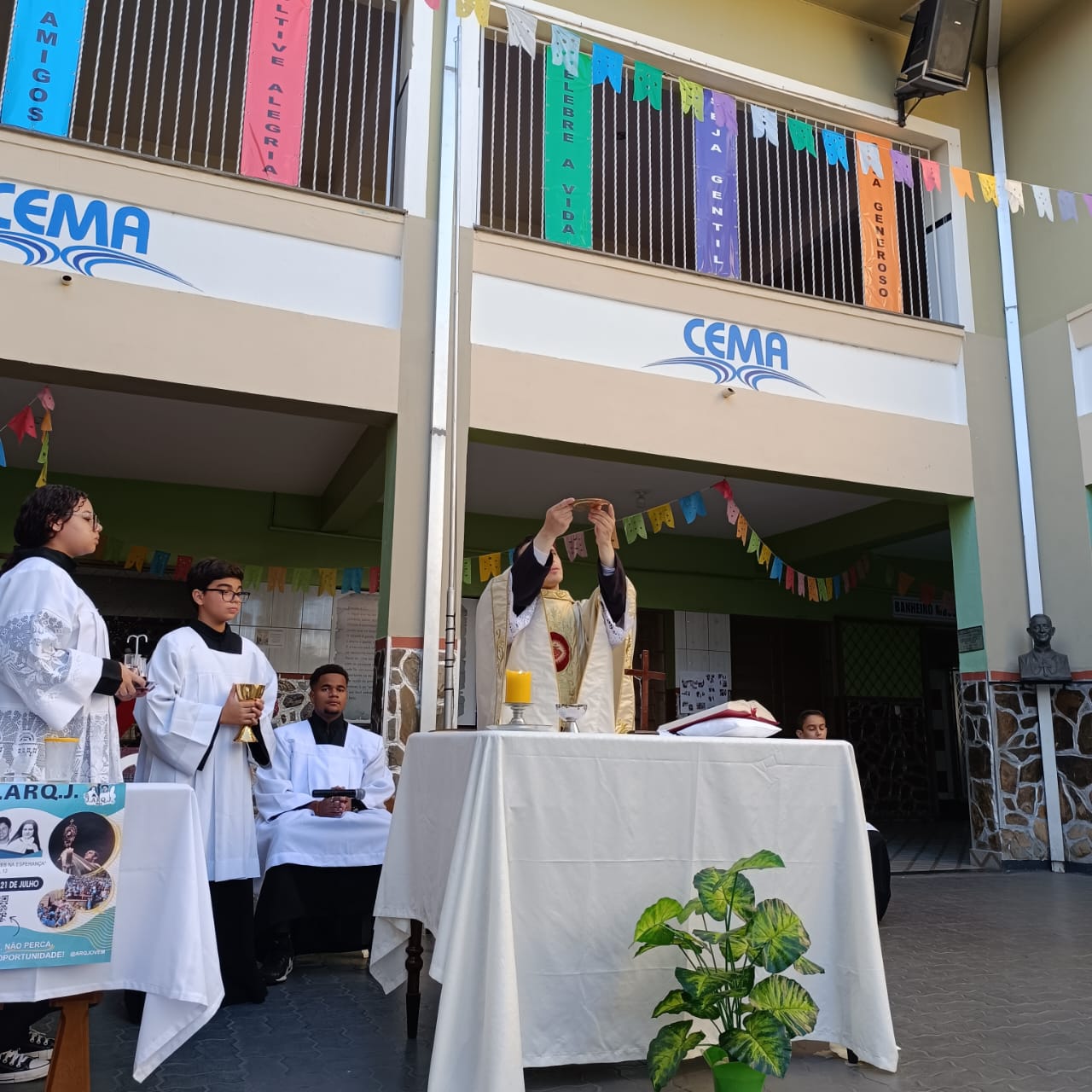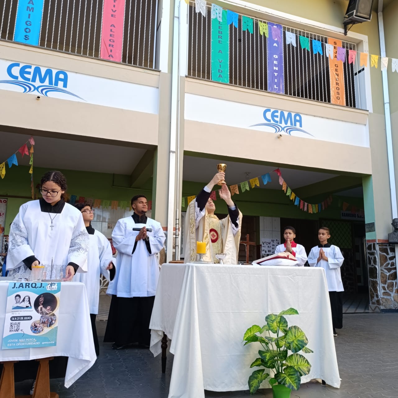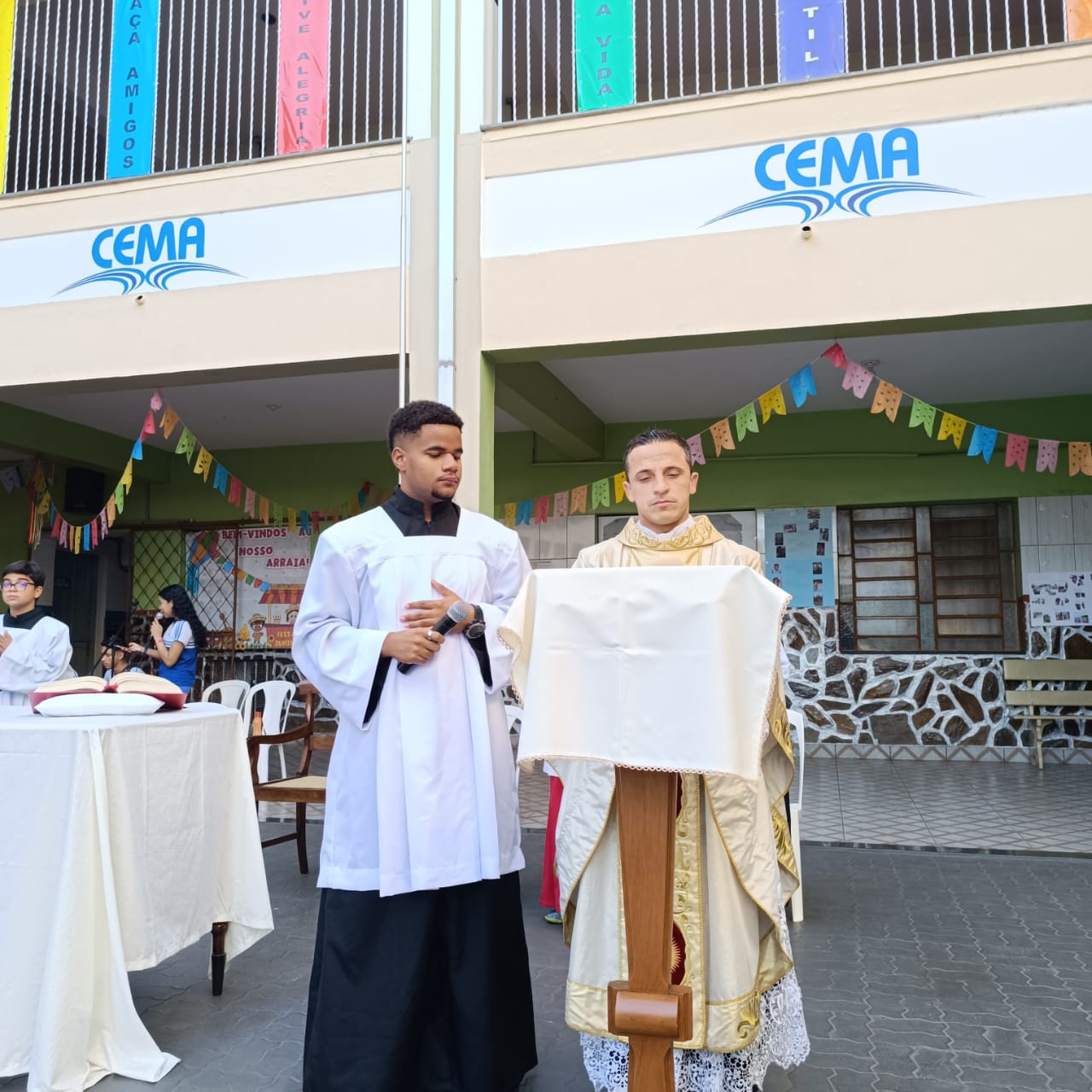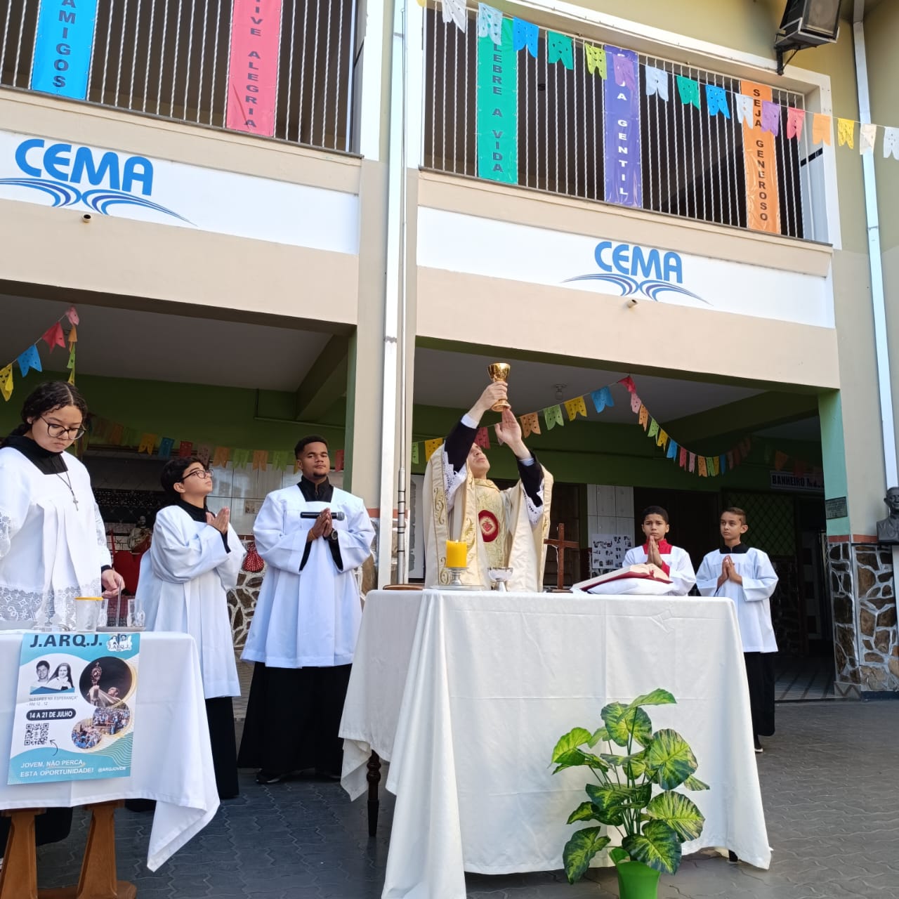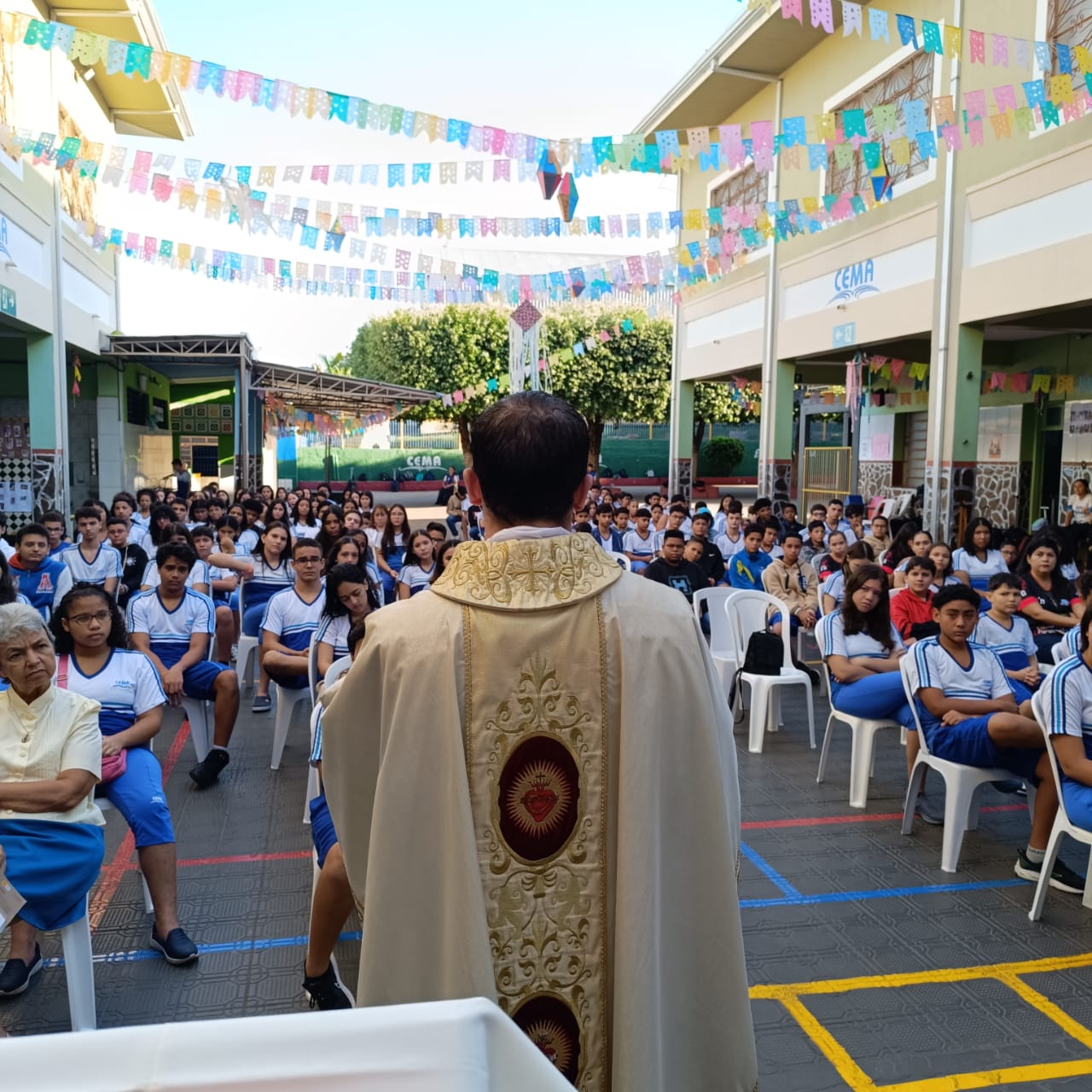 Na manhã de Segunda-feira, todos do Colégio CEMA se reuniram para um momento especial de fé e confraternização durante a Missa. A celebração, realizada nas dependências da escola , foi presidida pelo Pe Tony Moreira Pregrino e contou com a participação de alunos, colaboradores. Em sua homilia, o Pe Tony Moreira Pregrino ressaltou a importância da fé e da educação na formação dos jovens, além de convidar todos os presentes a refletirem sobre o papel da comunidade escolar na construção de um mundo mais justo e solidário. Durante a Missa, os alunos entoaram cânticos religiosos e participaram ativamente da liturgia, demonstrando grande entusiasmo e devoção. Ao final da celebração, todos os presentes receberam a bênção doPe Tony Moreira Pregrino e puderam compartilhar um momento de confraternização no pátio da escola. A Missa em Ação de Graças foi um momento marcante para toda a comunidade escolar do Colégio Cema, que se uniu em fé e esperança para celebrar os laços que os unem e agradecer pelas bênçãos recebidas. Sobre o Colégio CEMA: O Colégio Cema é uma instituição de ensino que se dedica à formação integral de seus alunos, promovendo o desenvolvimento intelectual, social, moral e espiritual. A escola oferece um ambiente acolhedor e estimulante, onde os alunos são incentivados a aprender, crescer e se tornarem cidadãos conscientes e engajados na sociedade.