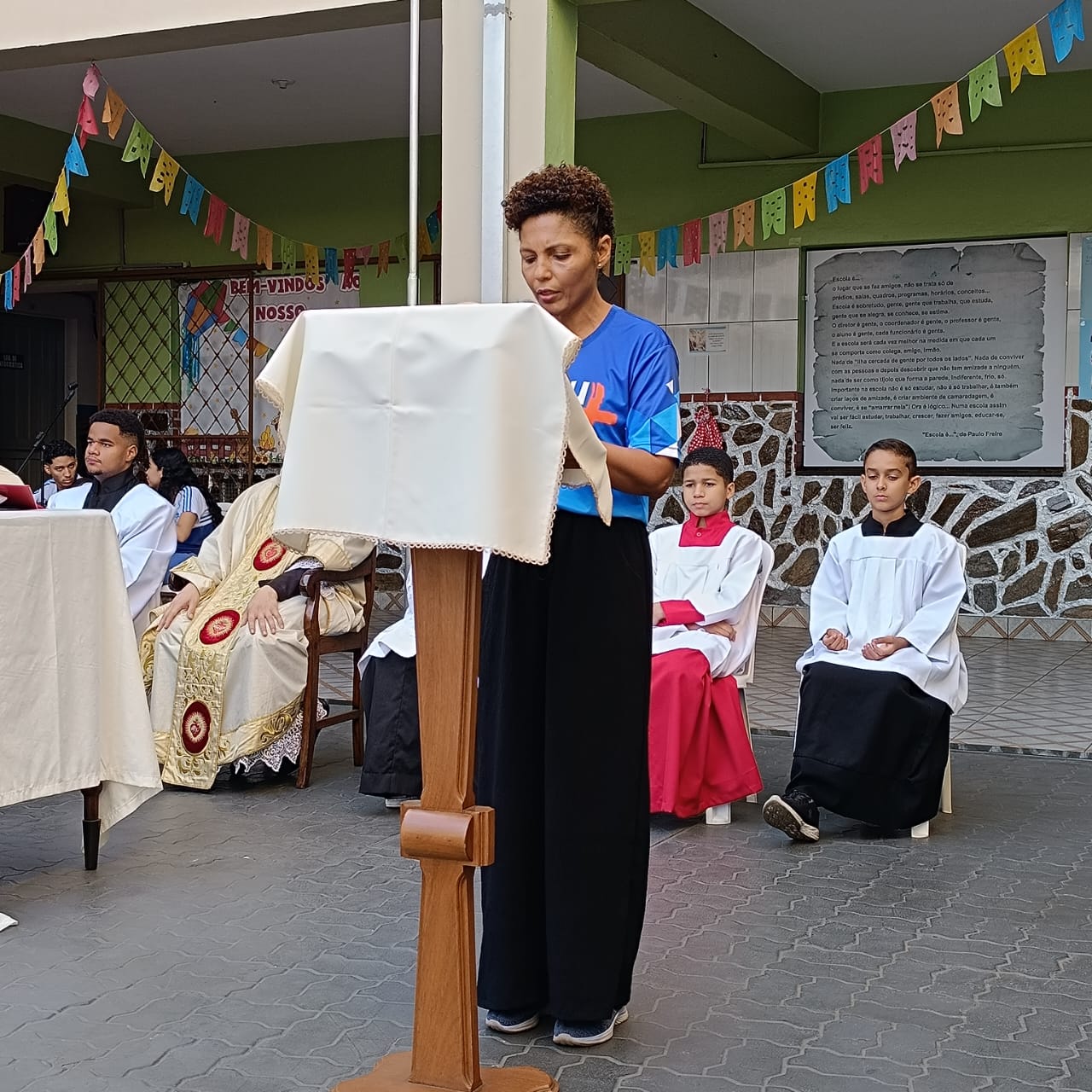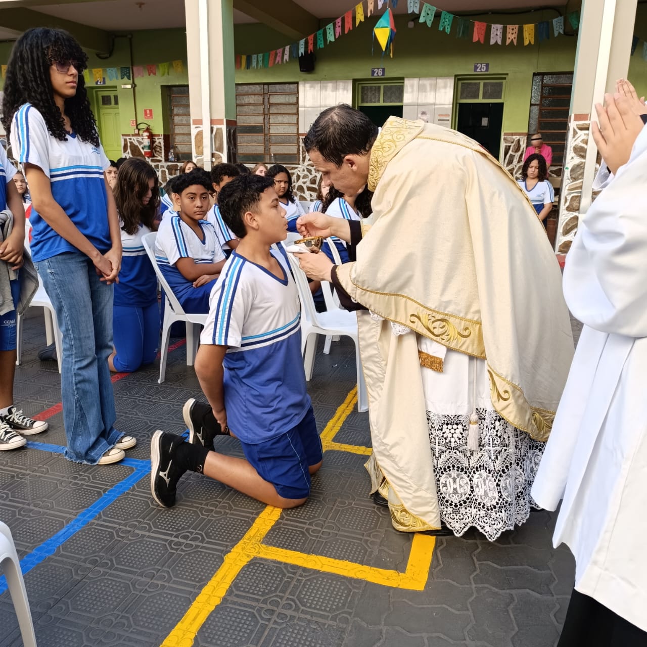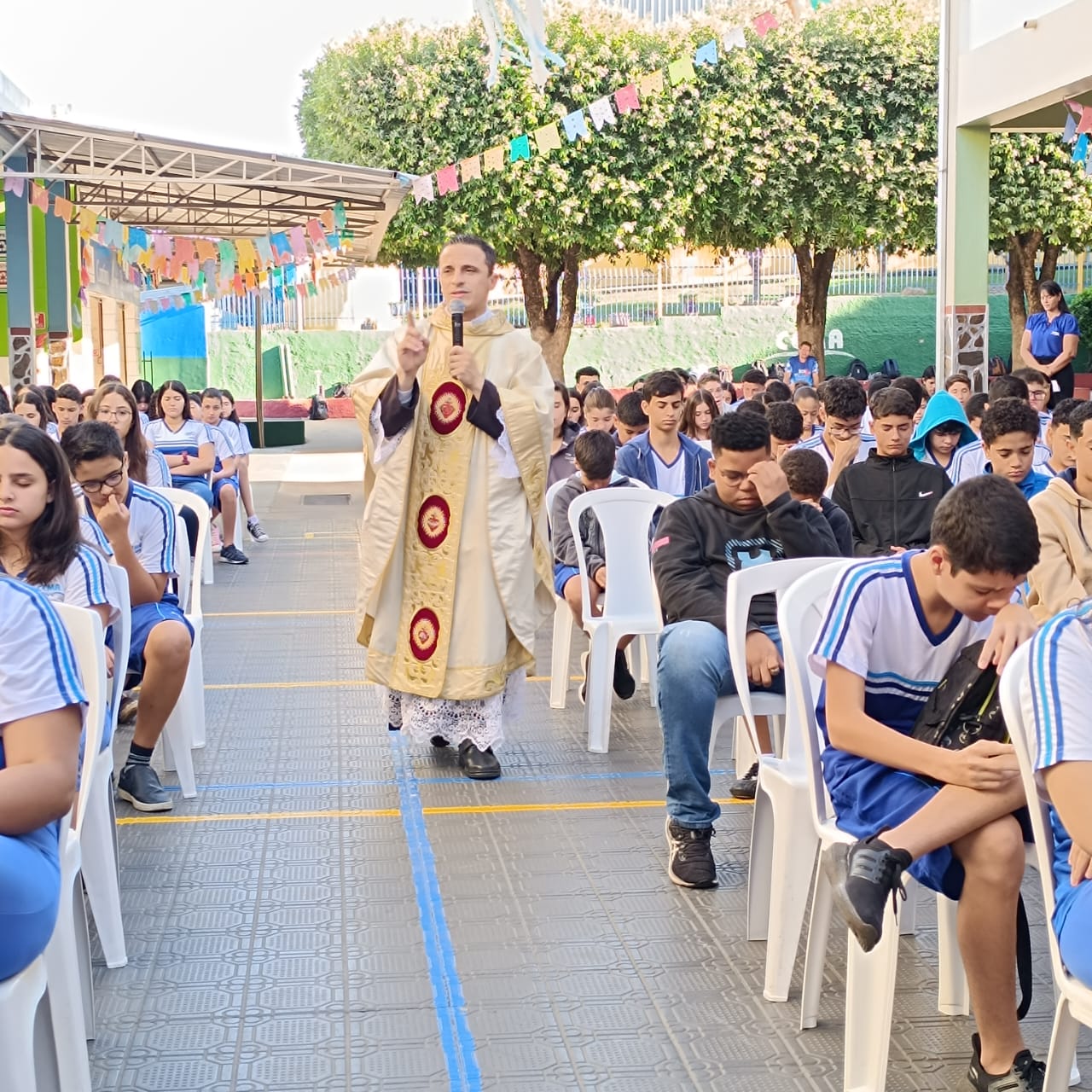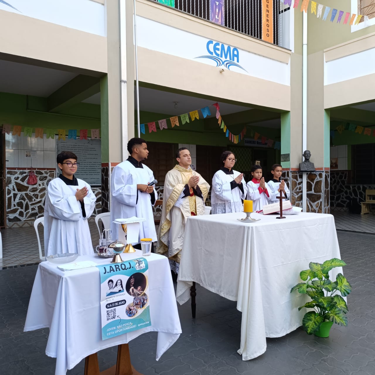 Na manhã de Segunda-feira, todos do Colégio CEMA se reuniram para um momento especial de fé e confraternização durante a Missa. A celebração, realizada nas dependências da escola , foi presidida pelo Pe Tony Moreira Pregrino e contou com a participação de alunos, colaboradores. Em sua homilia, o Pe Tony Moreira Pregrino ressaltou a importância da fé e da educação na formação dos jovens, além de convidar todos os presentes a refletirem sobre o papel da comunidade escolar na construção de um mundo mais justo e solidário. Durante a Missa, os alunos entoaram cânticos religiosos e participaram ativamente da liturgia, demonstrando grande entusiasmo e devoção. Ao final da celebração, todos os presentes receberam a bênção doPe Tony Moreira Pregrino e puderam compartilhar um momento de confraternização no pátio da escola. A Missa em Ação de Graças foi um momento marcante para toda a comunidade escolar do Colégio Cema, que se uniu em fé e esperança para celebrar os laços que os unem e agradecer pelas bênçãos recebidas. Sobre o Colégio CEMA: O Colégio Cema é uma instituição de ensino que se dedica à formação integral de seus alunos, promovendo o desenvolvimento intelectual, social, moral e espiritual. A escola oferece um ambiente acolhedor e estimulante, onde os alunos são incentivados a aprender, crescer e se tornarem cidadãos conscientes e engajados na sociedade.